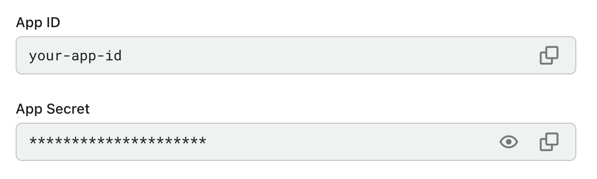 This is achieved by including the app's credentials in the Basic authentication form in the request Authorization header: base64-encode {App ID}:{App Secret} and set it as the value after the Basic prefix.